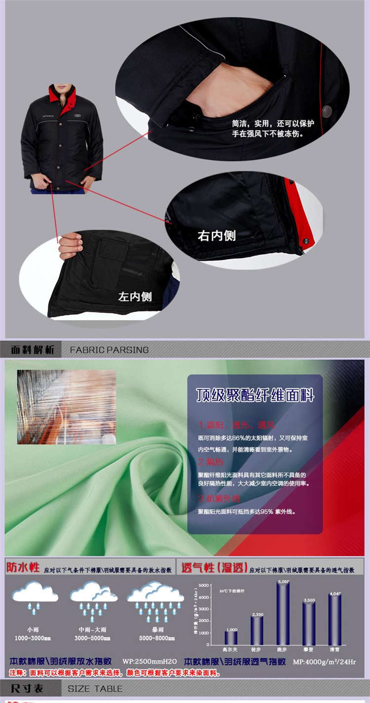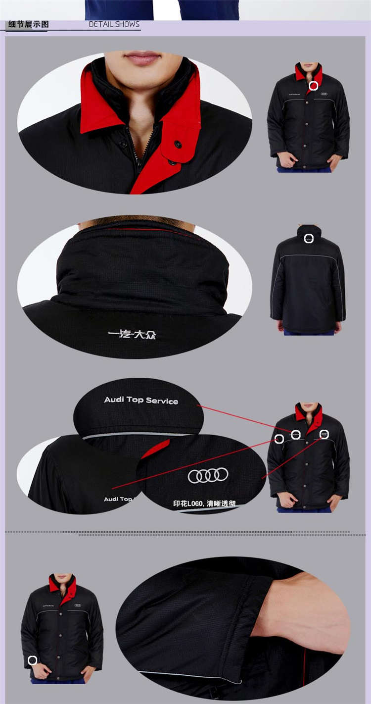 一汽大眾棉服定做奧迪4S店防寒服生產(chǎn)廠家